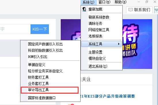 一、此工具位于主菜單的菜單欄-系統-系統工具-審計導出工具,使用時請找到對應路徑并單擊工具進行使用