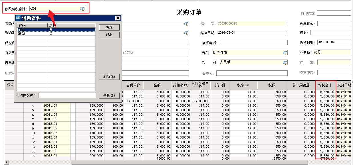 因此,業務人員在處理訂單與發票業務時,一般采用「四舍五入」舍去金額數值中多余的小數,并在金蝶KIS云·旗艦版系統中,據此填寫采購訂單、銷售訂單、購貨發票、銷售發票的「金額」字段數據。