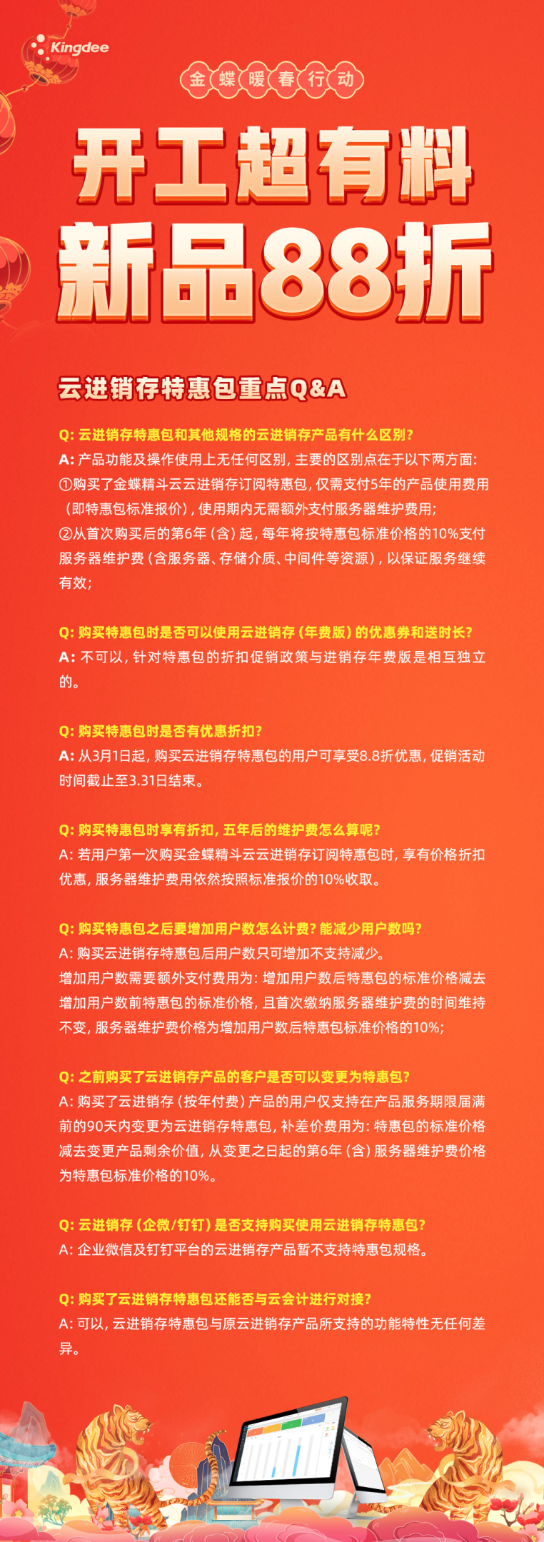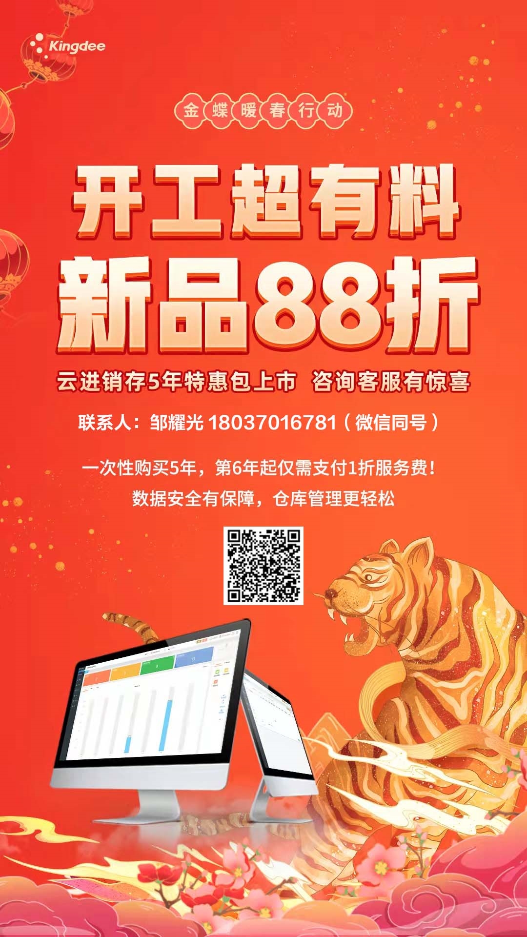 2022年3.1號接金蝶總部通知,洛陽金蝶軟件對金蝶新產品學習 市場宣傳 銷售,金蝶開工有料,精斗云云進銷存5年特惠包新品上市,新購享受88折。