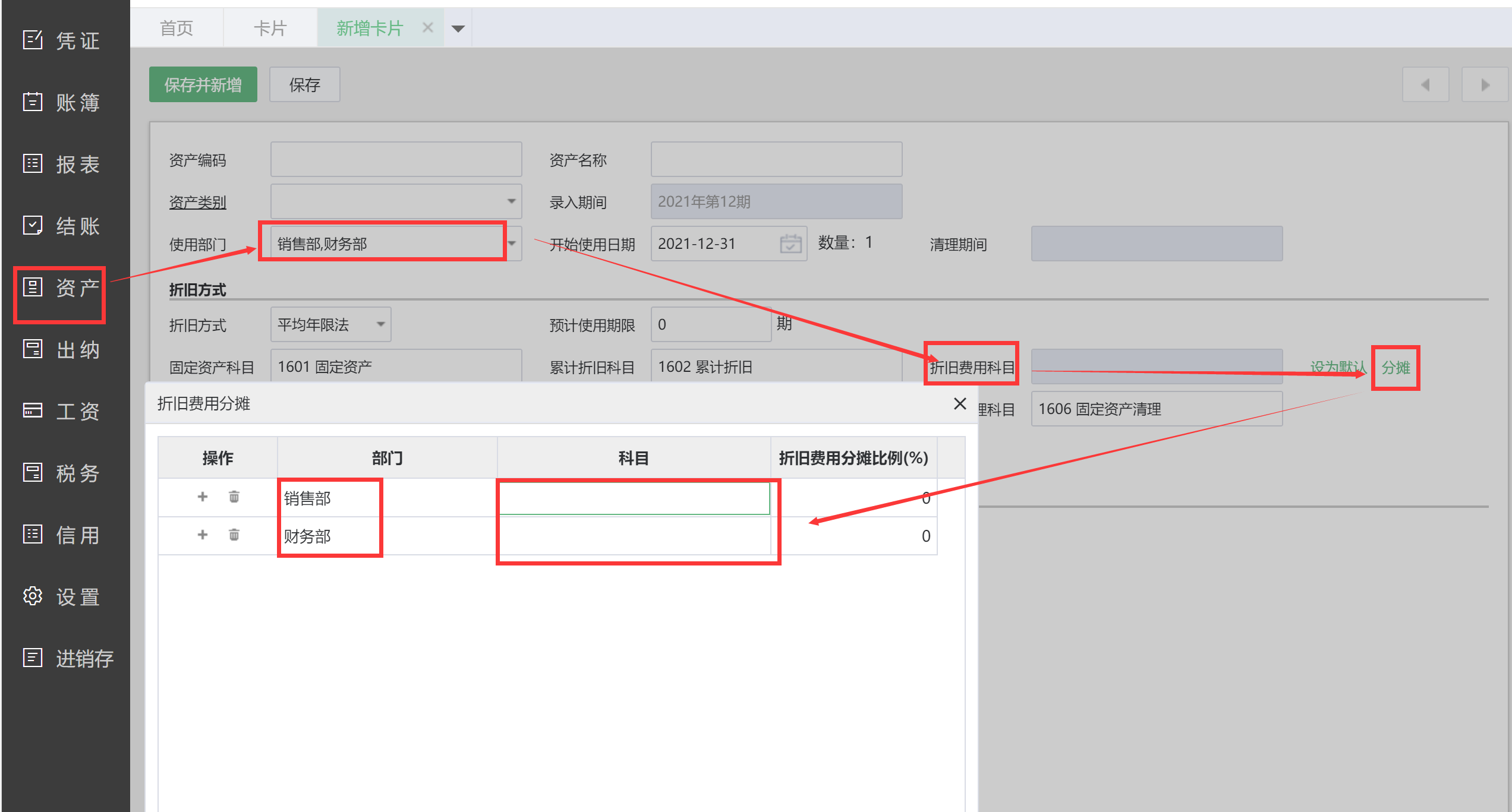 1、固定資產卡片增加了雙自定義核算功能;