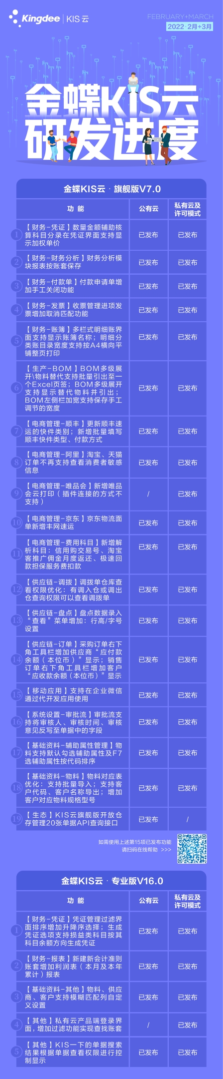 洛陽金蝶軟件—2022.2-3月金蝶KIS云產品研發更新進度