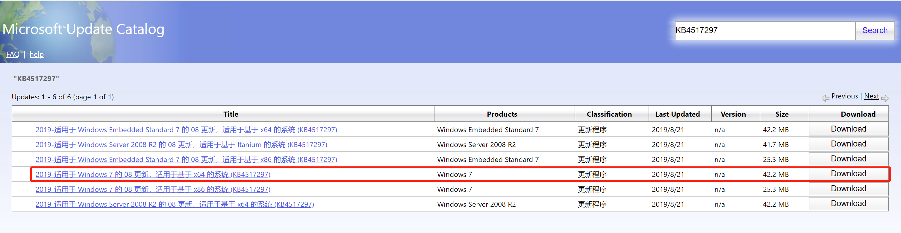 2019-08 Update for Windows 7 for x64-based Systems (KB4517297)