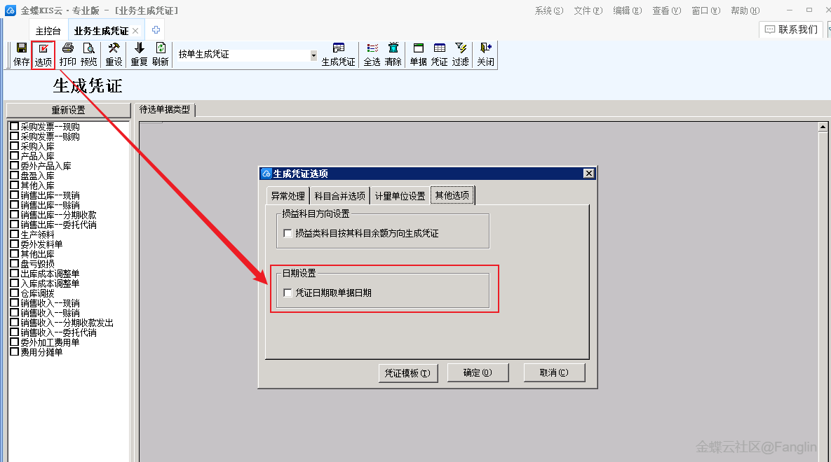 (4)當財務與業務處于同一期間時,支持單據生成憑證的憑證日期取單據日期