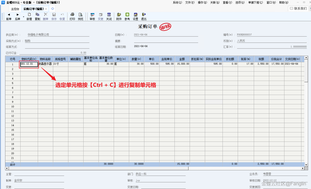 (5)單據審核狀態下支持單元格按【Ctrl+C】快捷鍵復制功能
