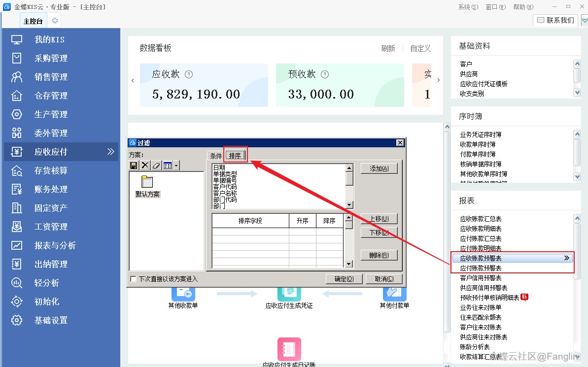 (7)應收/應付賬款預警表,過濾界面支持排序功能