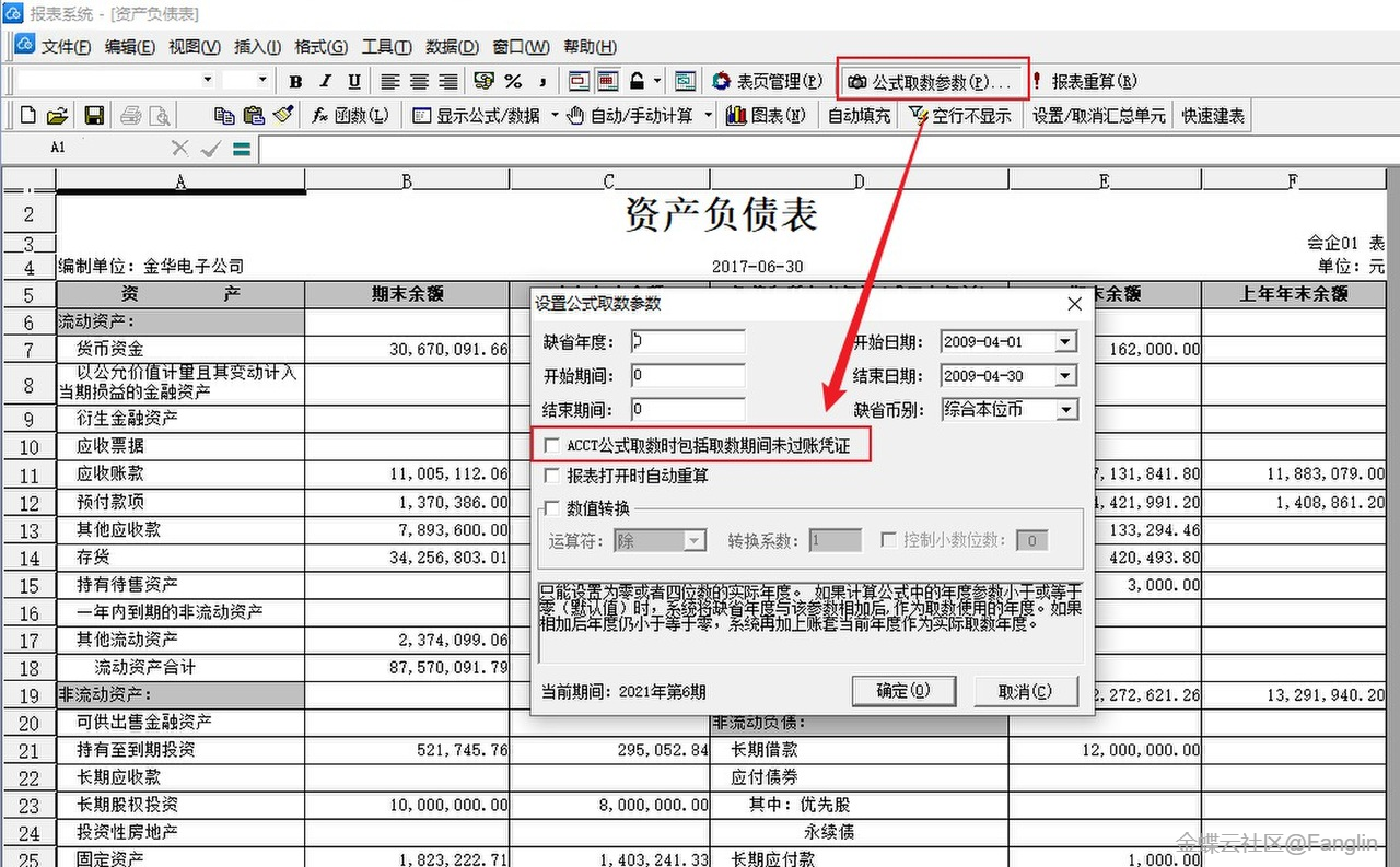 (1)報表與分析模塊,ACCT函數支持取以后期間的未過賬憑證數據