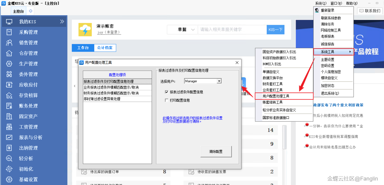 (2)系統工具新增【用戶配置處理工具】