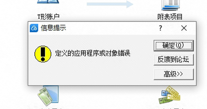 【運(yùn)行錯(cuò)誤-節(jié)點(diǎn)】 報(bào)表與分析 模塊——【資產(chǎn)負(fù)債表】、【利潤(rùn)表】打開,即彈出如下報(bào)錯(cuò):