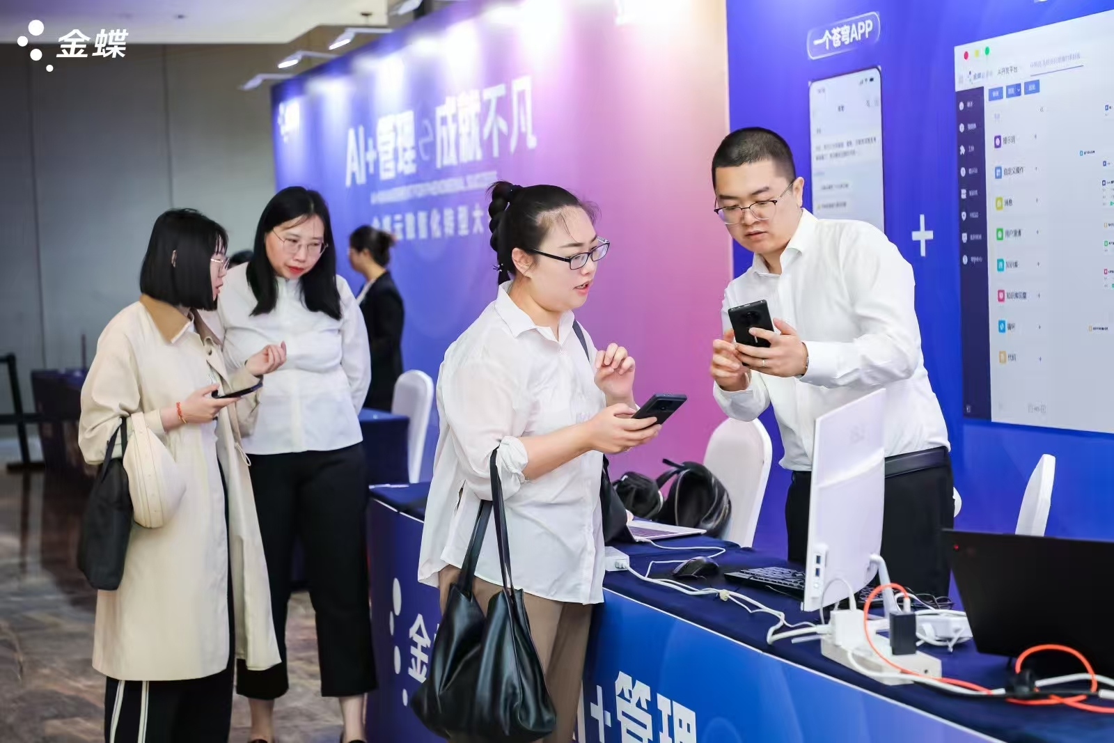 會場內,聚焦“AI+管理”,各方觀點精彩紛呈,智慧火花競相碰撞,共同探討數字化浪潮下的發展新路徑。會場外,AI應用場景展區熱鬧非凡,精彩的內容、專業的演示吸引了眾多參會嘉賓的目光,紛紛駐足交流,親身體驗數智化在企業中的實際應用。